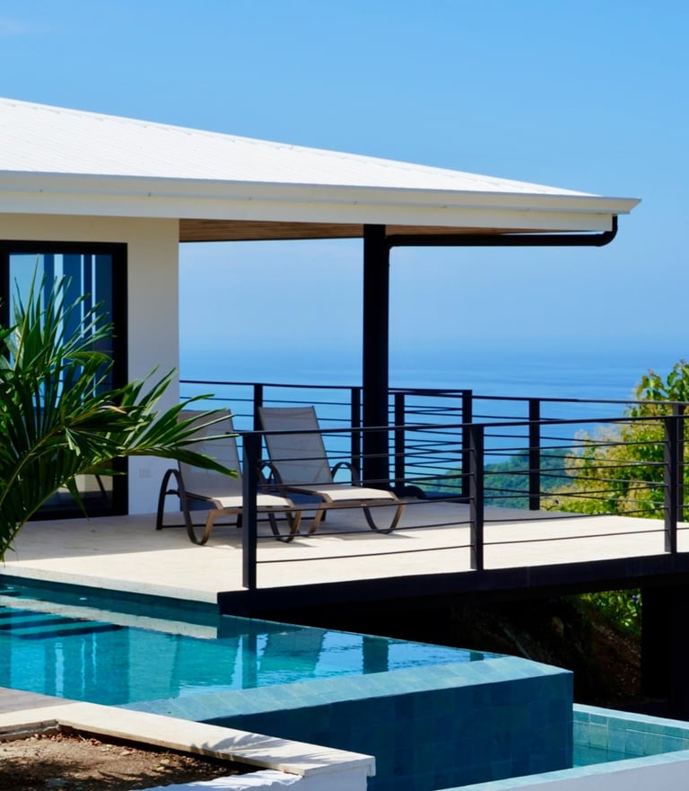 Nestled high above Playa Carrillo, one of Costa Rica's most beautiful beaches, this recently constructed modern retreat offers unparalleled ocean views that will take your breath away.